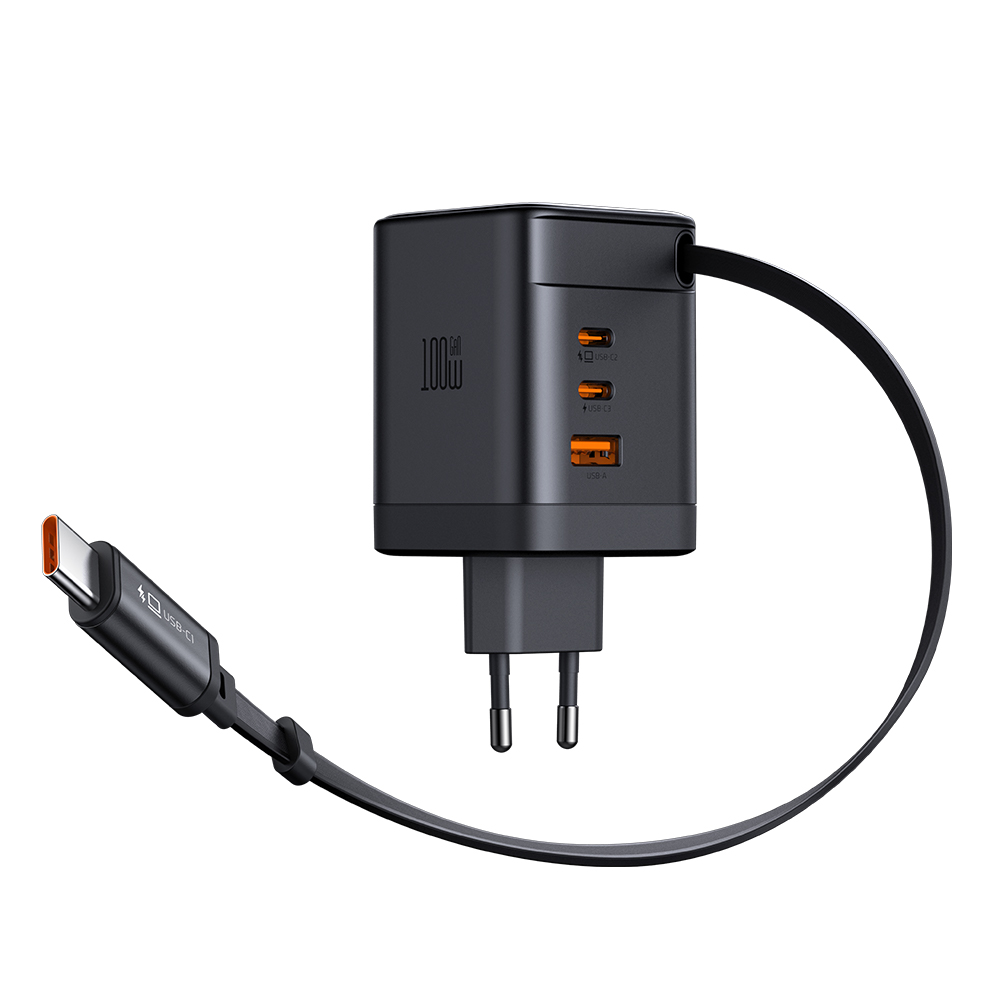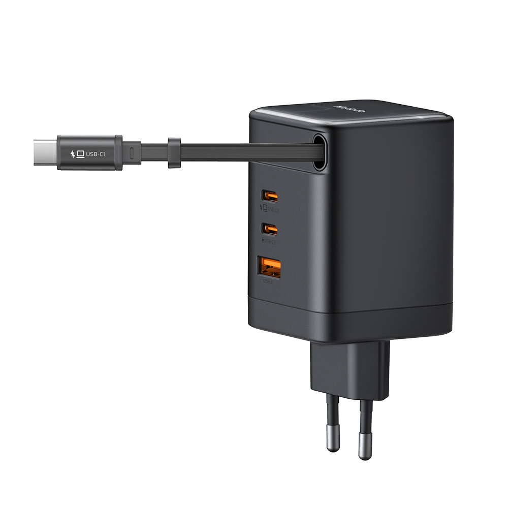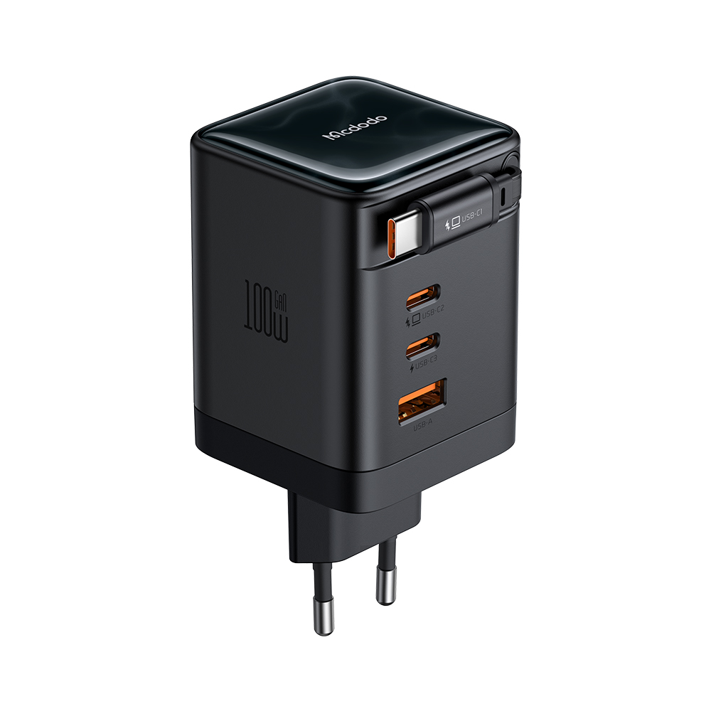 Mcdodo CH-8470 — це передова зарядна станція потужністю 100 Вт, побудована на базі напівпровідників GaN п’ятого покоління. Завдяки високій потужності вона здатна одночасно заряджати два ноутбуки та два смартфони без втрати ефективності. Унікальною особливістю моделі є вбудований кабель USB-C з рулеткою (65 см), який плавно витягується та автоматично фіксується. Станція підтримує практично всі існуючі протоколи швидкої зарядки: PD 3.0, QC 4.0+, PPS, Apple 2.4A та інші. Розумна система розподілу енергії динамічно підлаштовує потужність під кожен підключений пристрій, гарантуючи безпечне та швидке живлення.