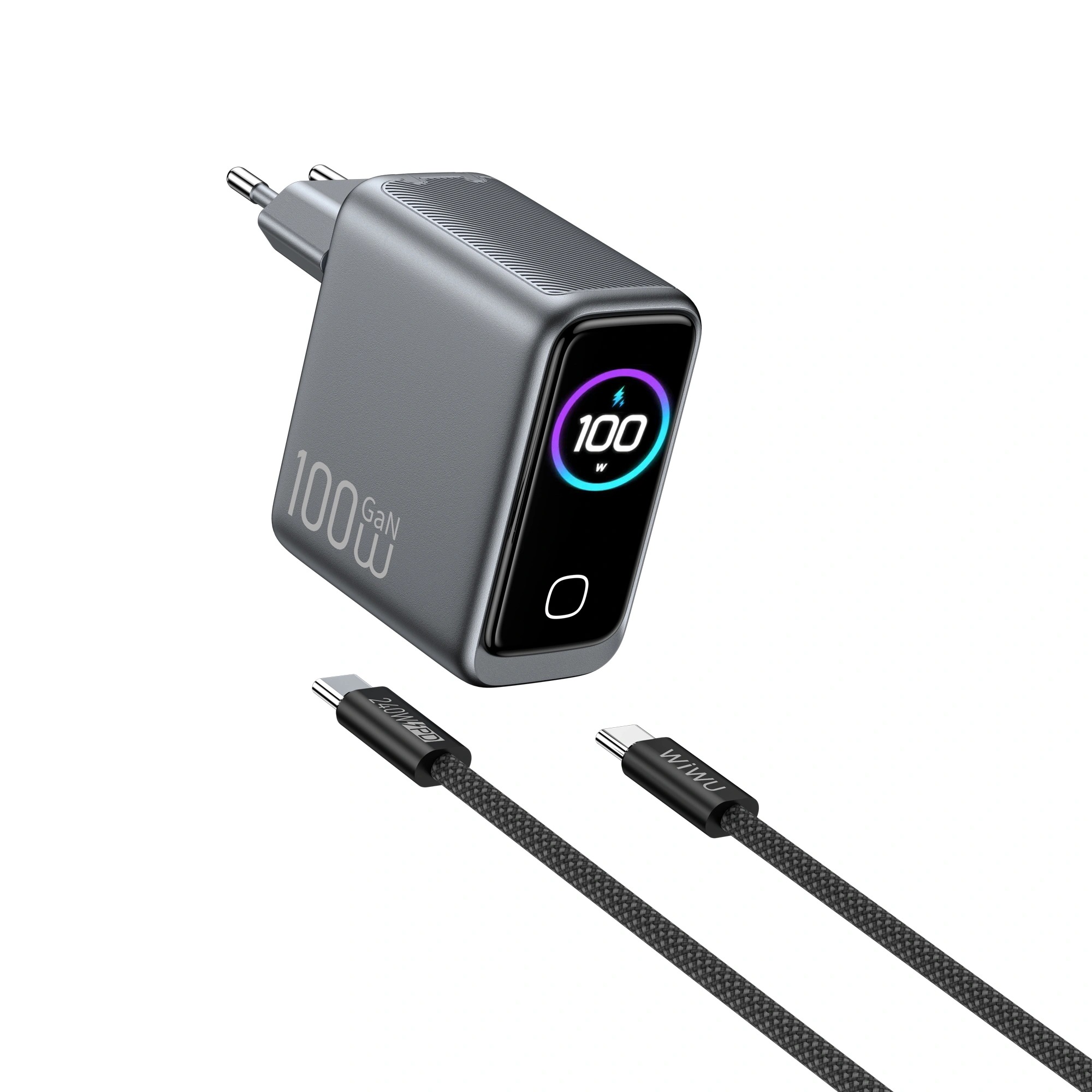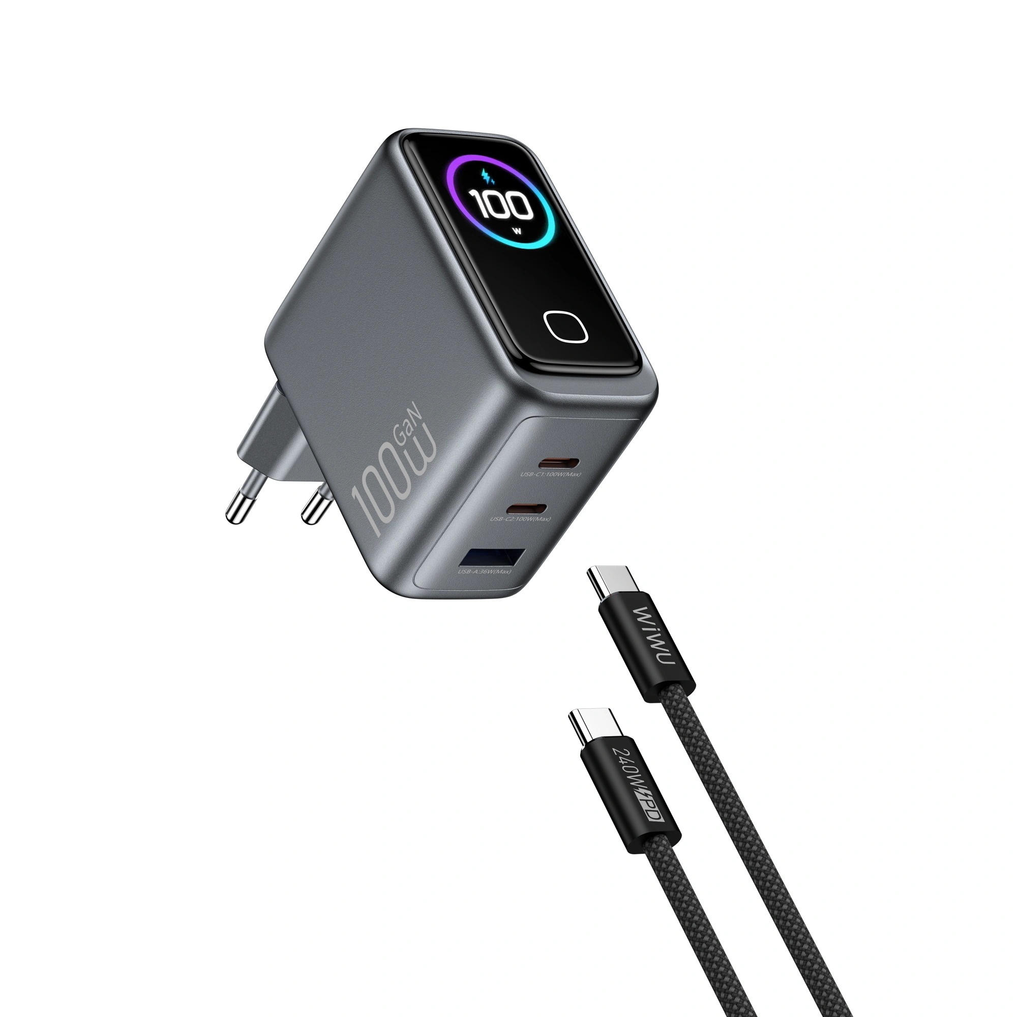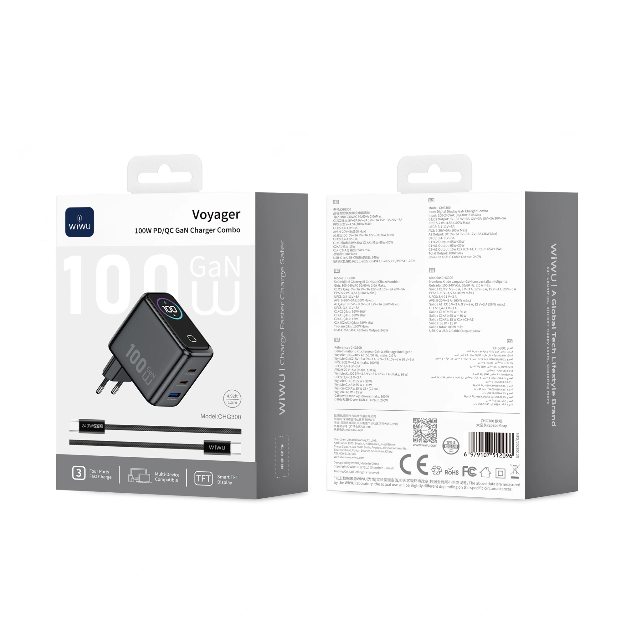 WIWU Voyager CHG300 — це високоефективний зарядний пристрій на базі технології GaN, що забезпечує сумарну потужність 100 Вт. Завдяки підтримці сучасних протоколів швидкої зарядки, адаптер здатний одночасно живити ноутбук (через порт USB-C) та додаткові мобільні пристрої без перегріву корпусу. Трьохпортова конфігурація (2xUSB-C та USB-A) дозволяє заряджати MacBook, iPad та iPhone одночасно, раціонально розподіляючи енергію між ними. Вбудована багаторівнева система захисту контролює напругу та силу струму, гарантуючи безпеку акумуляторів підключених гаджетів від короткого замикання та перевантаження.