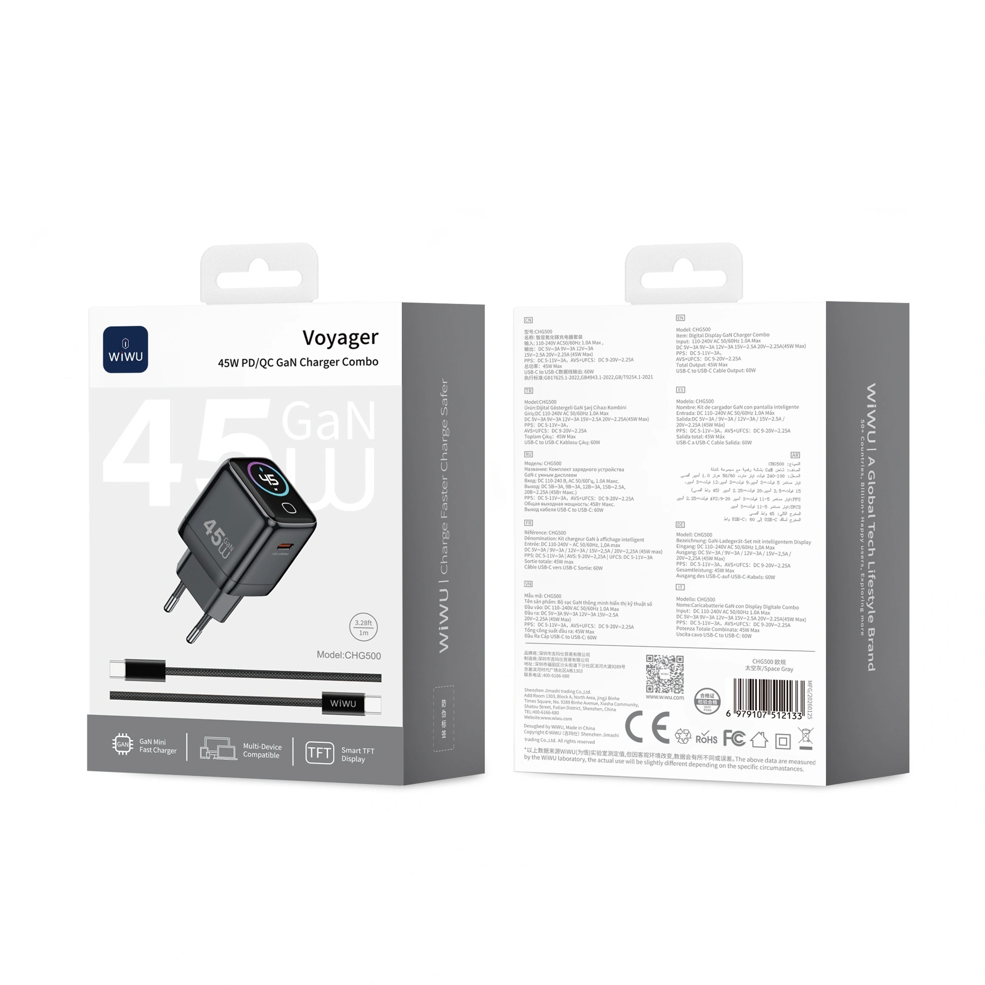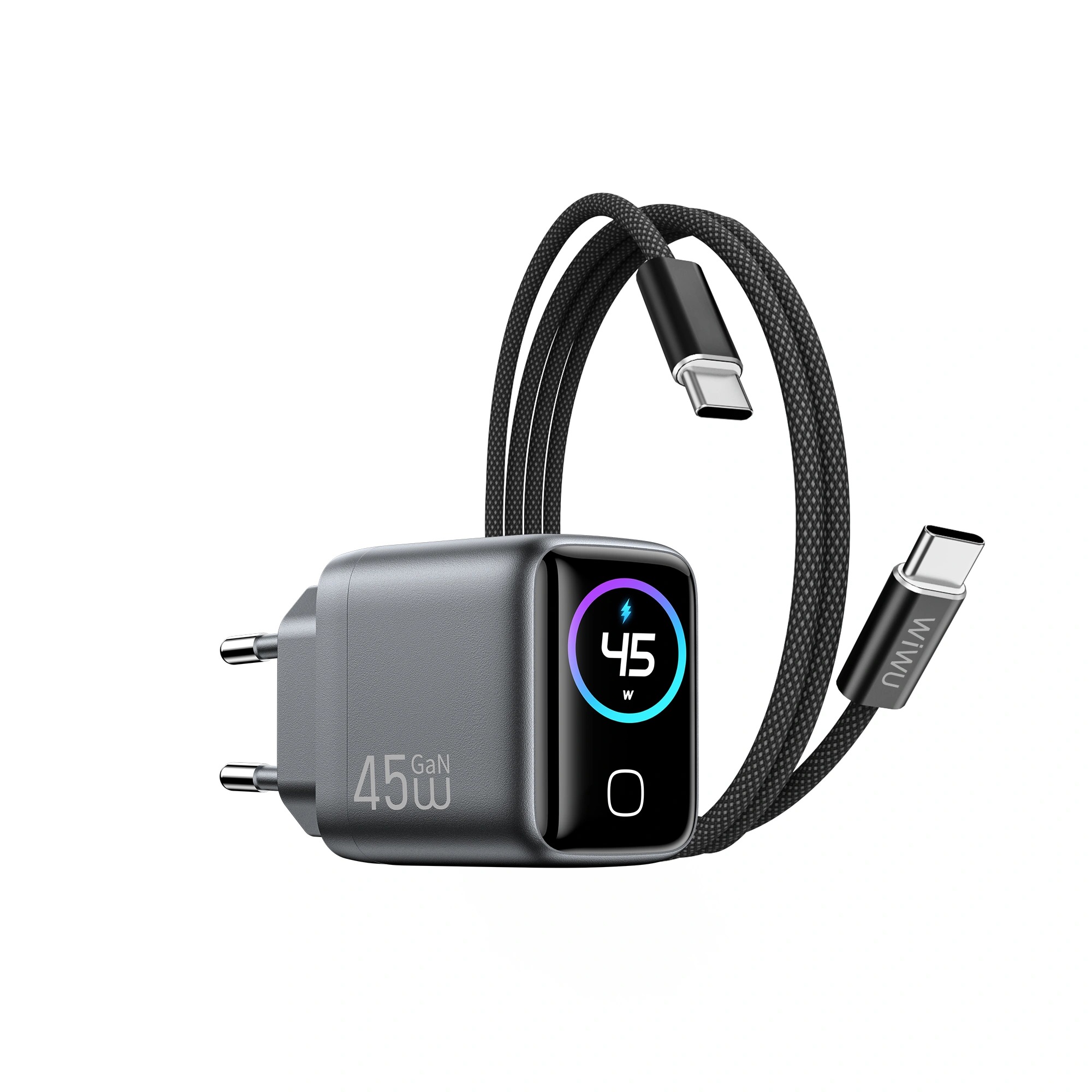 WIWU Voyager CHG500 — це високоефективний зарядний пристрій, побудований за технологією GaN, що дозволяє досягти потужності 45 Вт при мінімальних габаритах. Цей адаптер розроблений для швидкої зарядки смартфонів серії iPhone, iPad, а також компактних ультрабуків. Завдяки підтримці протоколів Power Delivery та PPS, пристрій забезпечує оптимальну швидкість зарядки без зайвого нагрівання, інтелектуально підлаштовуючи напругу під потреби акумулятора. Багаторівнева система захисту оберігає підключені гаджети від перепадів напруги, перегріву та короткого замикання, подовжуючи термін служби їх батарей.