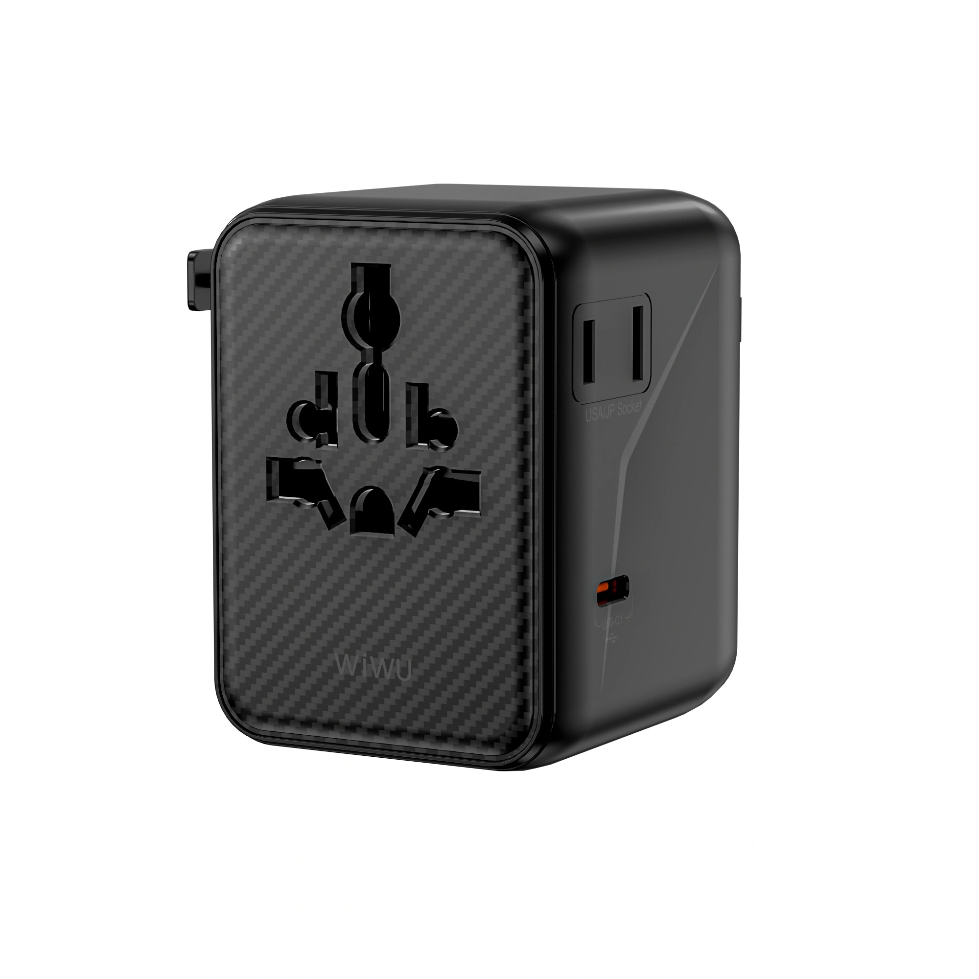 WiWU Wi-UA010 вирізняється преміальним діловим стилем із корпусом із PC та кевларового (Aramid Fiber) волокна, що забезпечує високу міцність і приємну шовковисто-гладку тактильність. Компактні розміри 55*54*65 мм роблять його зручним для подорожей та щоденного використання. Адаптер оснащений висувною вилкою з автоматичним блокуванням, що гарантує стабільне підключення і запобігає випадковому складанню. Завдяки змінним вилкам EU, UK, US, AU та додатковому поворотному перехіднику для Китаю, пристрій легко адаптується під стандарти майже будь-якої країни.