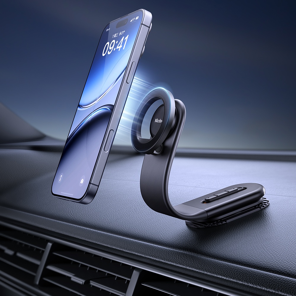 Mcdodo CM-6270 — це преміальний магнітний тримач із серії MagiGo, спеціально оптимізований для пристроїв із підтримкою MagSafe. В його основі лежить потужне кільце з неодимових магнітів, які створюють надійне притягання, здатне втримати смартфон навіть при різкому гальмуванні чи їзді по нерівній дорозі. Магнітна фіксація дозволяє встановлювати та знімати гаджет однією рукою за долі секунди. Конструкція магнітів стабілізована таким чином, щоб не впливати на роботу внутрішніх модулів телефону, зберігаючи ідеальну точність GPS-навігації та якість мобільного зв'язку.