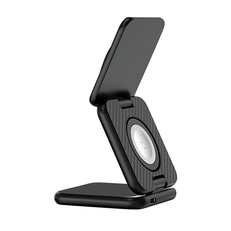 Wi-W035 виготовлений із преміальних матеріалів: алюмінієвого сплаву та Kevlar, що забезпечують надзвичайну міцність, стійкість до подряпин і довговічність конструкції. Модель виконана у стильному чорному кольорі, має мінімалістичну форму та акуратне розташування всіх зарядних платформ. Легка вага — всього 130 г — робить зарядку портативною та зручною для перенесення. Завдяки компактності й сучасному дизайну станція гармонійно виглядає на робочому столі, тумбочці чи в будь-якому інтер’єрі.