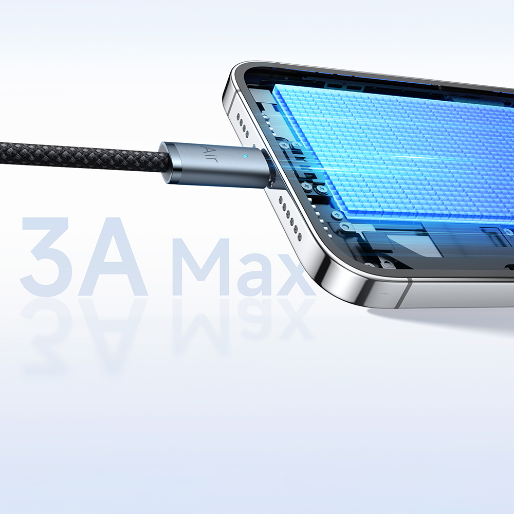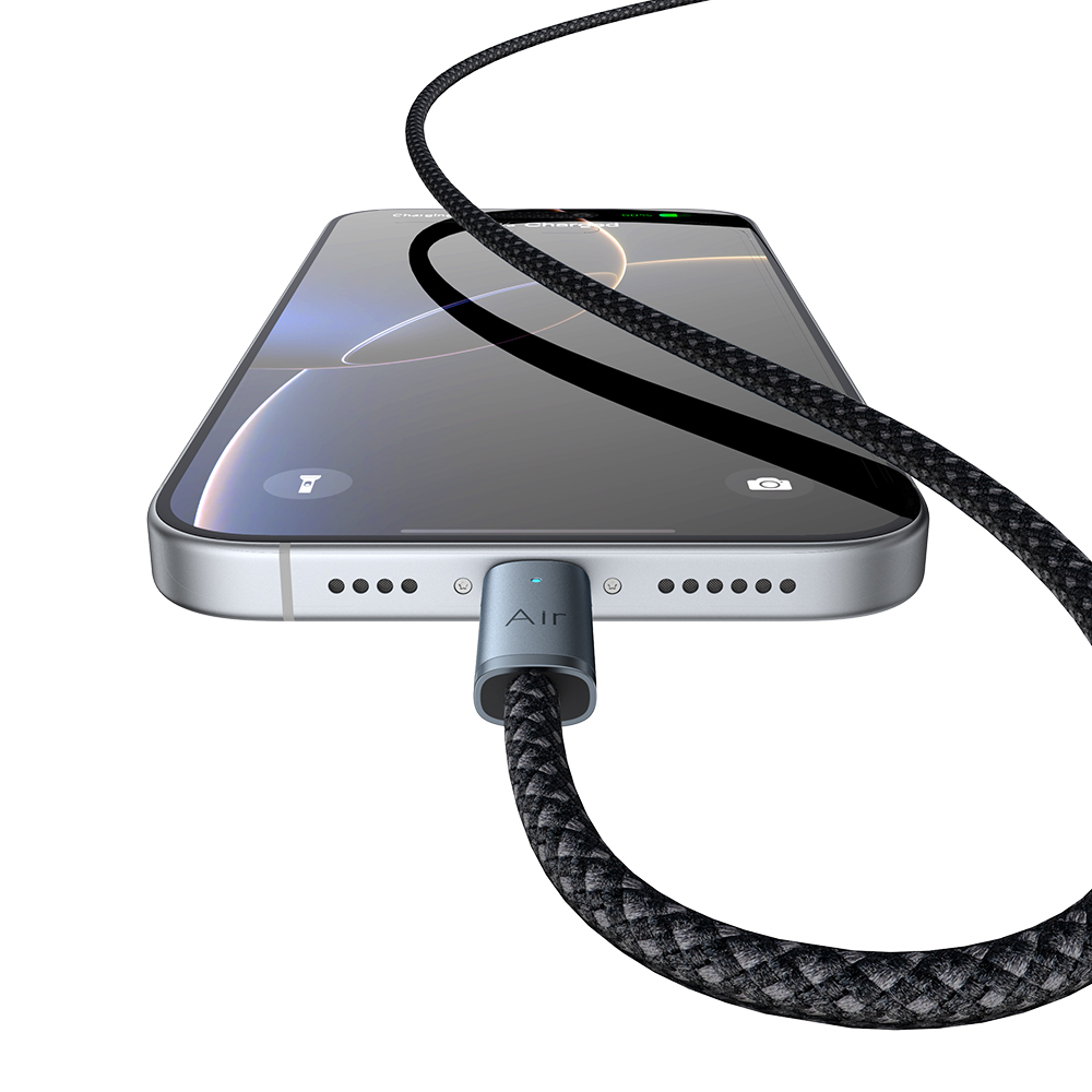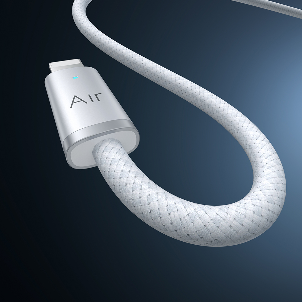 • ДизайнСерія Air Cable вирізняється своєю легкістю та особливою естетикою. Конектори мають прозорі елементи або стильне глянцеве покриття (залежно від кольору), що підкреслює технологічність аксесуара. Оболонка кабелю виготовлена з комбінації нейлону та термоеластопласту, що робить його надзвичайно гнучким і водночас стійким до розривів. Збільшена довжина 1.2 метри надає більше свободи у використанні, ніж стандартні метрові кабелі. Посилені захисні вставки біля штекерів гарантують, що дріт не переломиться навіть при сильних перегинах.
