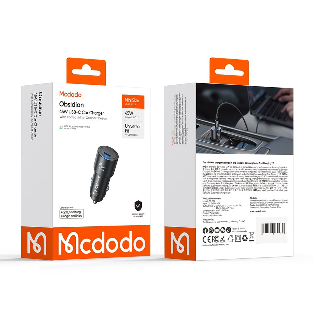 Mcdodo CC-5341 — це високопродуктивний автомобільний зарядний пристрій серії Obsidian, що видає сумарну потужність до 45 Вт. Адаптер оснащений портом USB-C і підтримує передові стандарти швидкої зарядки, включаючи Power Delivery (PD) та Quick Charge. Це дозволяє ефективно заряджати не тільки смартфони, а й планшети та навіть деякі моделі ноутбуків безпосередньо в дорозі. Вбудований інтелектуальний чип автоматично розпізнає підключений пристрій і регулює вихідний струм до 3А, гарантуючи максимальну швидкість зарядки при повному захисті акумулятора від перегріву та перевантаження.