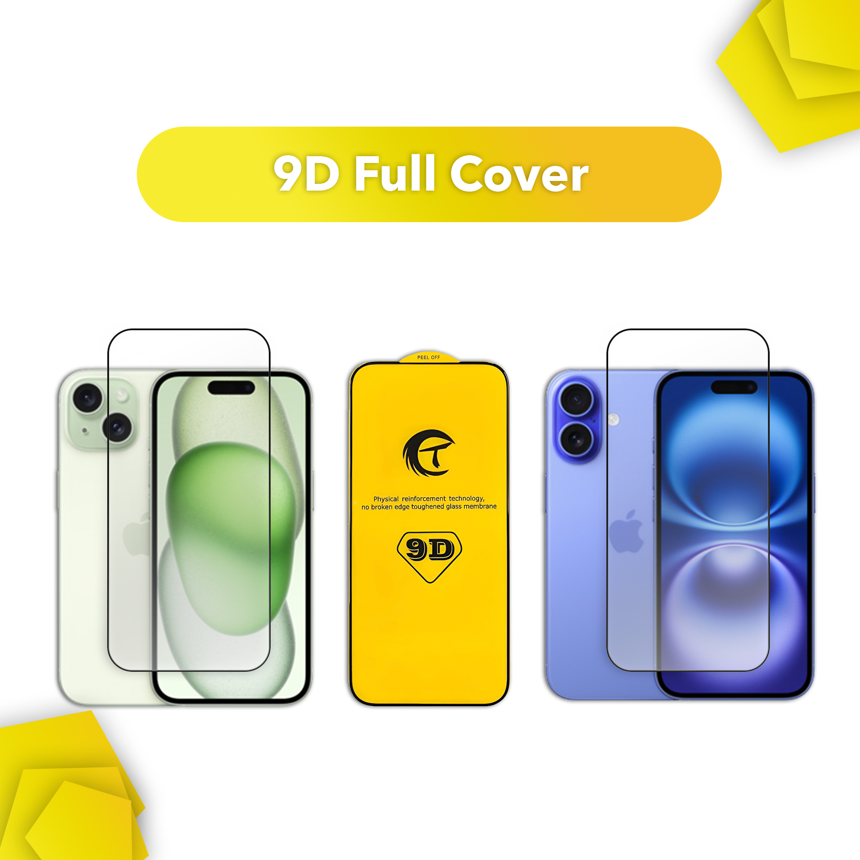 Захисне скло 9D для iPhone 15/16 Full Cover [без упаковки]