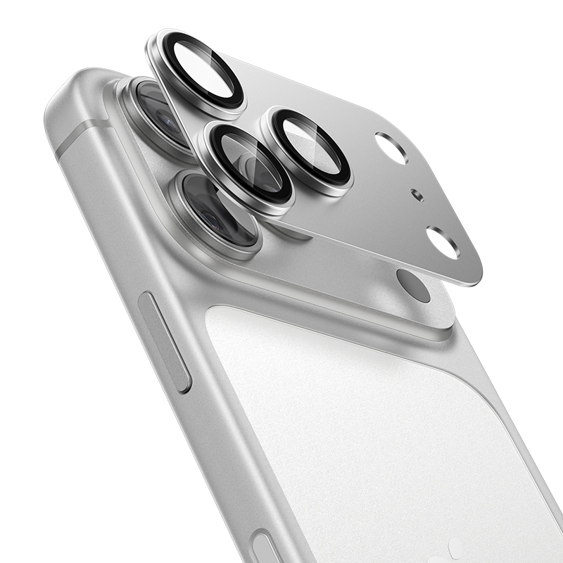Модель оснащена металевою рамкою з алюмінієвого сплаву, що надає преміального вигляду та створює ефект єдиного цілого з корпусом смартфона. Завдяки точній формі та наявності захисної пластини скло щільно прилягає, формуючи невидимий протектор, який повторює дизайн iPhone. Пакування у коробці містить все необхідне для акуратного монтажу — вологу серветку, мікрофібру, стікери для видалення пилу та скло з. Це стильне й надійне рішення для тих, хто хоче захистити камеру та зберегти преміальний вигляд пристрою.