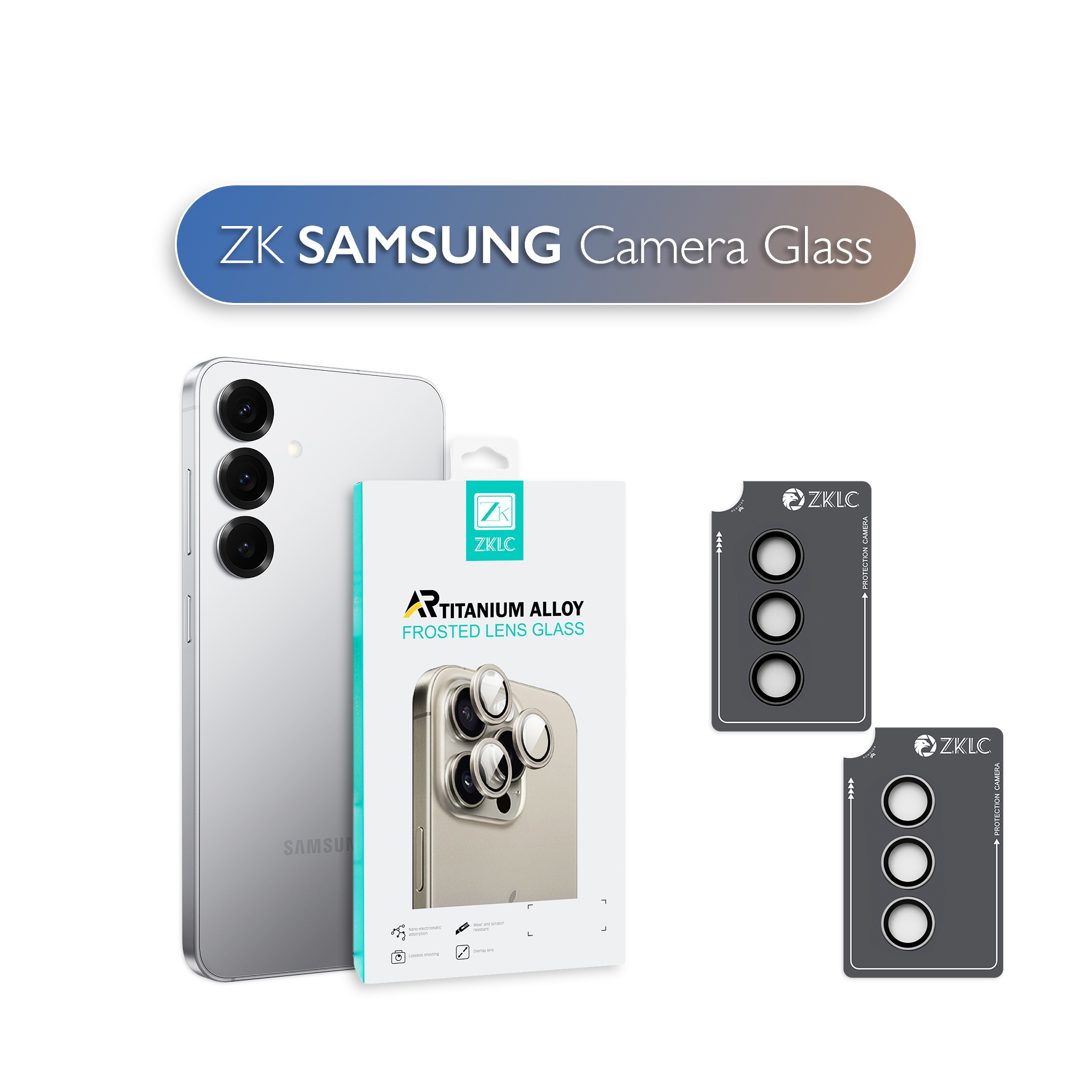 У дизайні скло ZK вирізняється елегантною чорною рамкою, яка гармонійно доповнює зовнішній вигляд Samsung. Точна підгонка забезпечує щільне прилягання до камери, не заважаючи роботі об'єктива чи використанню захисного чохла. Доступність у різних кольорах, таких як Black та Grey, дозволяє користувачам обрати варіант, що найкраще відповідає їхньому стилю та кольору пристрою. Цей аксесуар поєднує в собі функціональність та стиль, забезпечуючи захист камери без компромісів у дизайні.