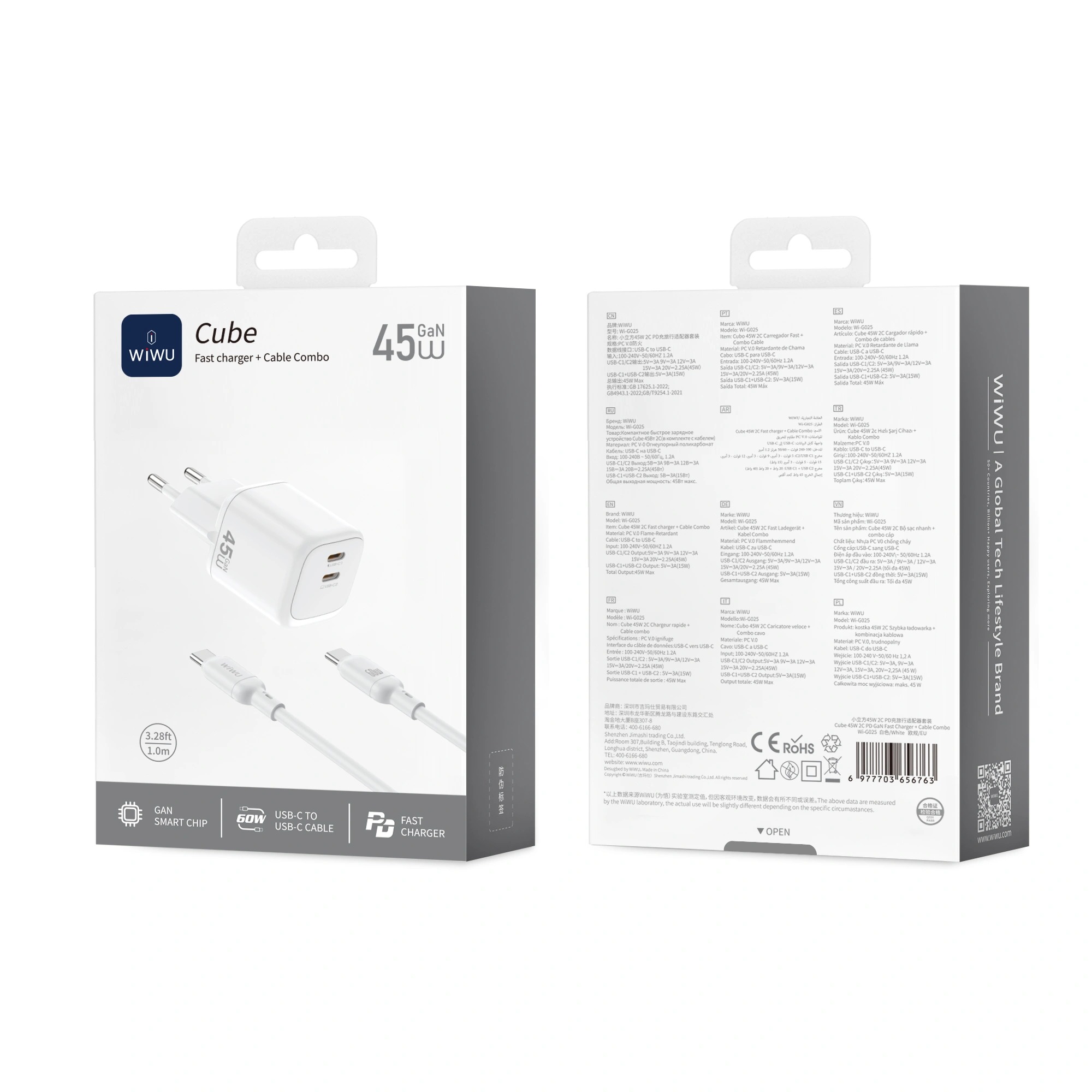 WIWU Cube Wi-G025 — це потужний GaN-адаптер 45 Вт з двома портами USB-C, що підтримують швидку зарядку для ноутбуків, планшетів і смартфонів. Завдяки оновленій технології GaN (нітрид галію) пристрій забезпечує високу потужність у надзвичайно компактному корпусі, зберігаючи стабільну та холодну роботу. Адаптер оснащений інтелектуальним чіпом із 9-рівневою системою захисту, який контролює напругу, струм і температуру для максимально безпечної зарядки. Комбінований формат робить цей зарядний пристрій універсальним рішенням для одночасного живлення кількох пристроїв, забезпечуючи ефективність, швидкість і надійність у будь-яких умовах.