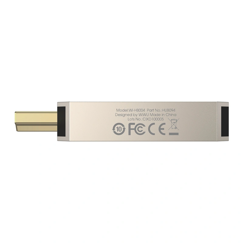 • ДизайнАдаптер WiWU Infinite HB004 виконаний із міцного алюмінієвого сплаву, що забезпечує довговічність і стійкість. З вагою 69 г і компактними розмірами він легко поміщається в кишеню чи сумку, ідеально підходячи для подорожей. Колір Titanium додає елегантного вигляду, роблячи пристрій стильним аксесуаром.